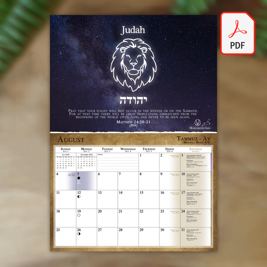(Digital Version) Biblical Calendar from April 2025 to March 2026 | YHVH's Feast Days, New Moon Dates, Shabbat Torah Portion Schedule, Mazzaroth